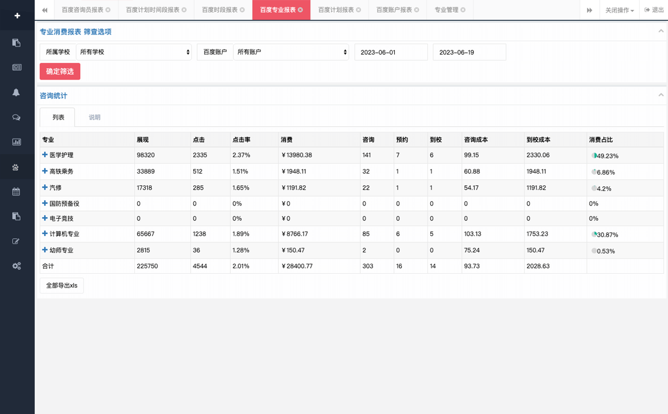 一鍵生成賬戶投放關鍵詞的咨詢、到校成本!